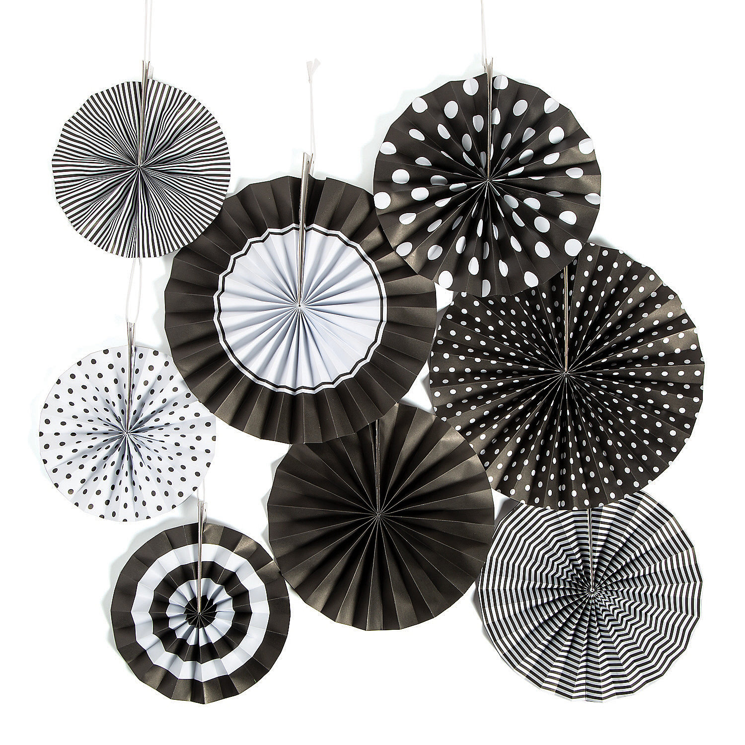 Red Black White Paper Fan Decoration Set – Classic Hanging Rosettes for Birthday, Anniversary & Party Backdrop Decor