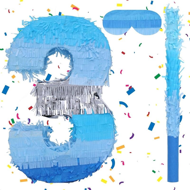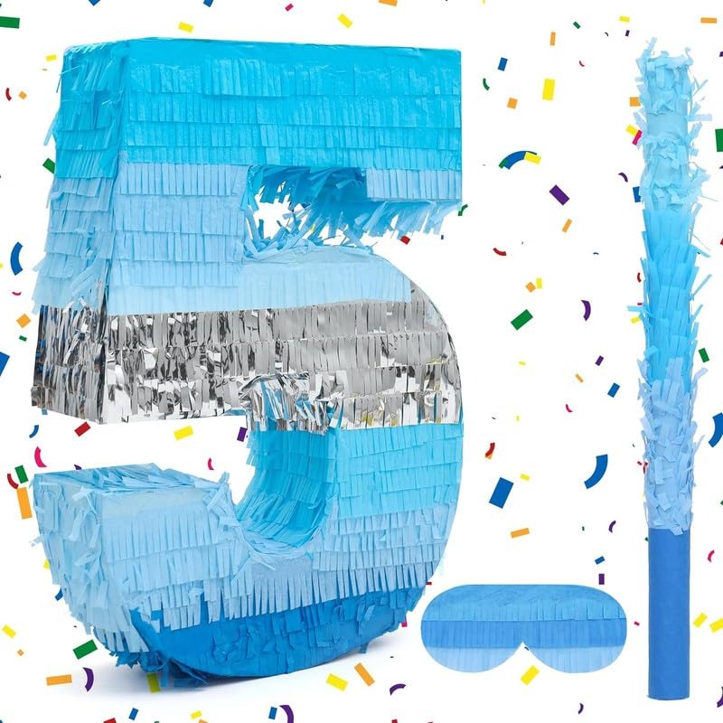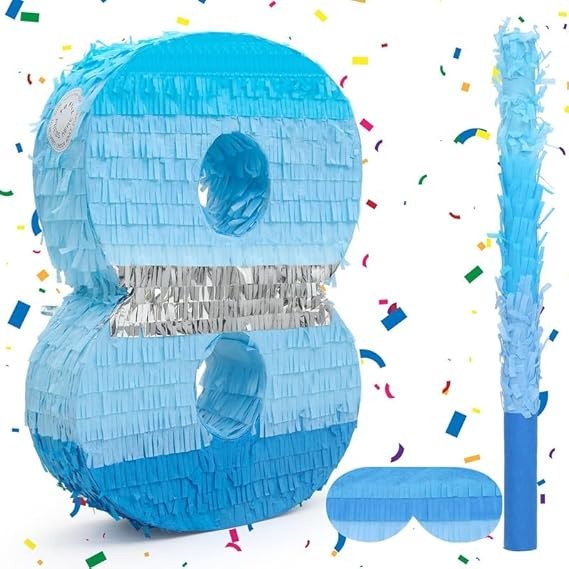 Make birthday celebrations more fun and exciting with this Blue Number Pinata, available in numbers 0 to 9 for different birthday ages and milestone celebrations. Designed in beautiful shades of blue with decorative fringe layers and a shiny silver accent stripe, it creates a stylish centerpiece for birthday party decorations. Fill the pinata with candies, chocolates, confetti, or small toys to create a fun and interactive party game for kids and guests. Simply hang the pinata and let players take turns hitting it with the stick until the surprises fall out. Made from high-quality paper material, this pinata is lightweight, durable, and easy to hang for indoor or outdoor celebrations. Perfect for boys’ birthday parties, kids’ celebrations, milestone birthdays, baby showers, and family events. This number pinata works as both a birthday decoration and an entertaining party activity, making every celebration memorable and enjoyable.