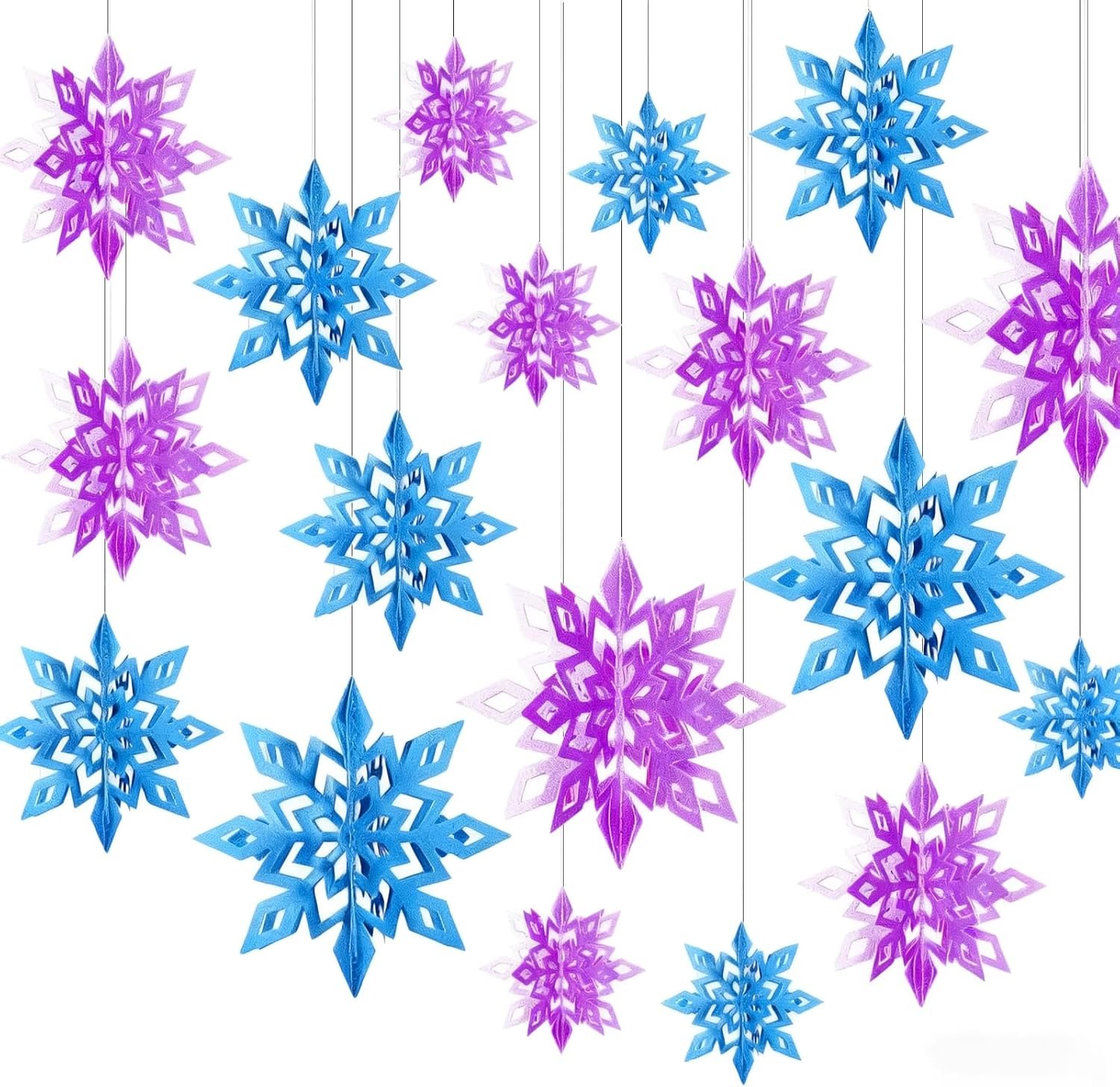 Create a magical winter atmosphere with these 3D Hanging Snowflake Decorations. Designed to bring a festive and elegant look to your space, these decorative snowflakes are perfect for Christmas parties, winter celebrations, holiday events, and home décor. Each snowflake features a beautiful 3D cut design that adds depth and style to your decorations. Simply hang them from ceilings, walls, windows, Christmas trees, or party backdrops to instantly transform your party space. Made from high-quality decorative paper, these snowflakes are lightweight, durable, and easy to assemble. The vibrant colors and intricate patterns make them ideal for creating a winter wonderland theme for your celebrations. Perfect for Christmas decorations, winter parties, holiday events, office décor, home décor, and photo booth backdrops.