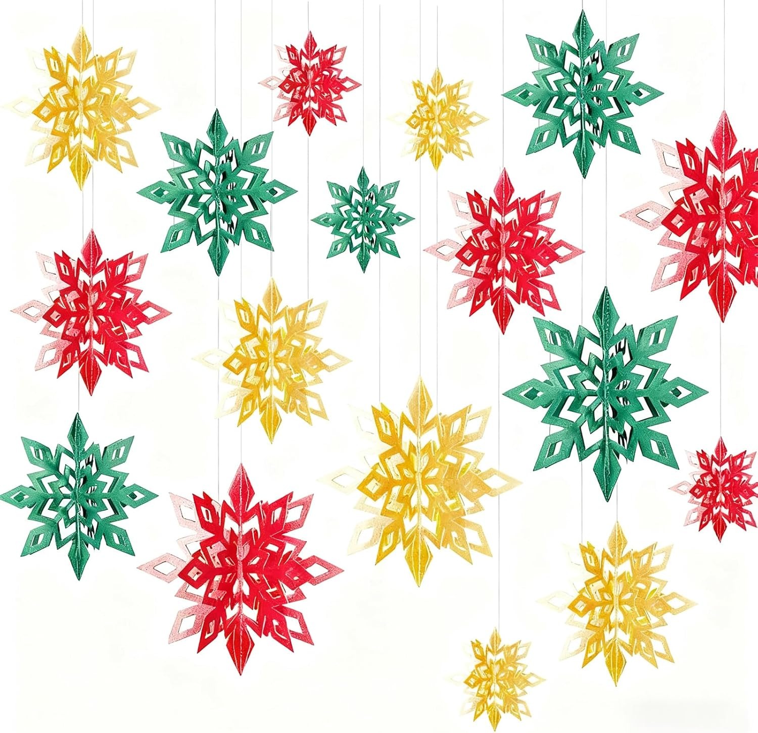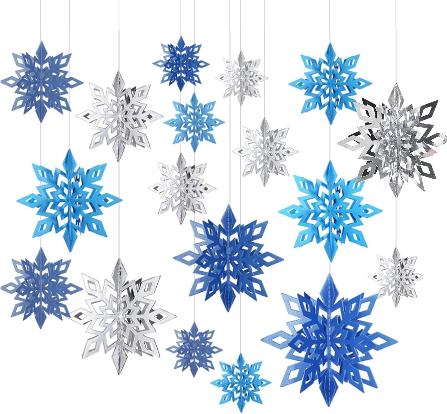 Create a magical winter atmosphere with these 3D Paper Snowflake Hanging Decorations. Designed with elegant snowflake patterns, these decorations bring a beautiful winter and Christmas theme to any space. Made from premium decorative paper, each snowflake opens into a stunning 3D design that adds depth and charm to your party décor. These lightweight decorations are easy to assemble and can be hung from ceilings, windows, walls, Christmas trees, or event backdrops. Perfect for Christmas parties, winter theme celebrations, holiday events, school functions, office decorations, and home décor. The stylish snowflake design creates a festive and elegant look for any celebration.