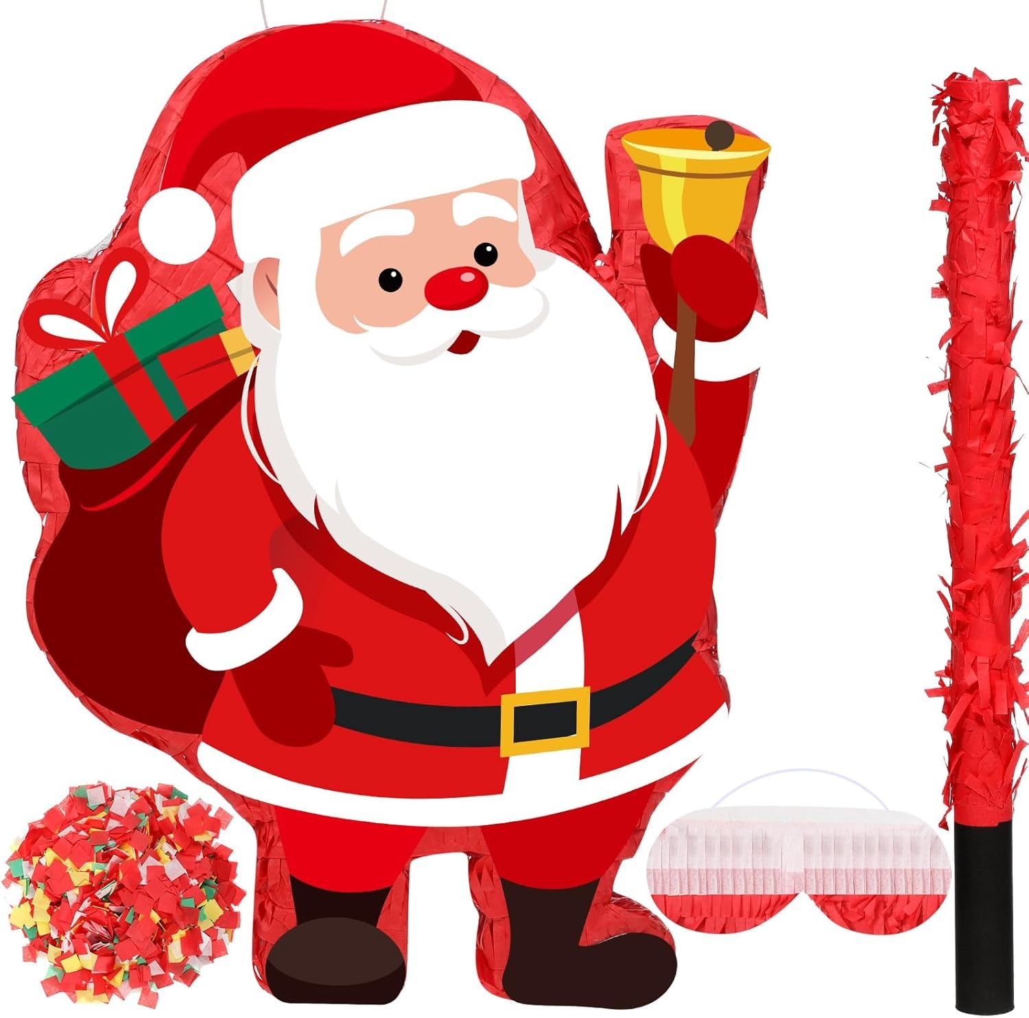 Santa Claus Pinata for Kids | Christmas Party Game Decoration | Includes Stick, Blindfold Mask & Confetti | Large Xmas Santa Pinata for Birthday & Holiday Celebration